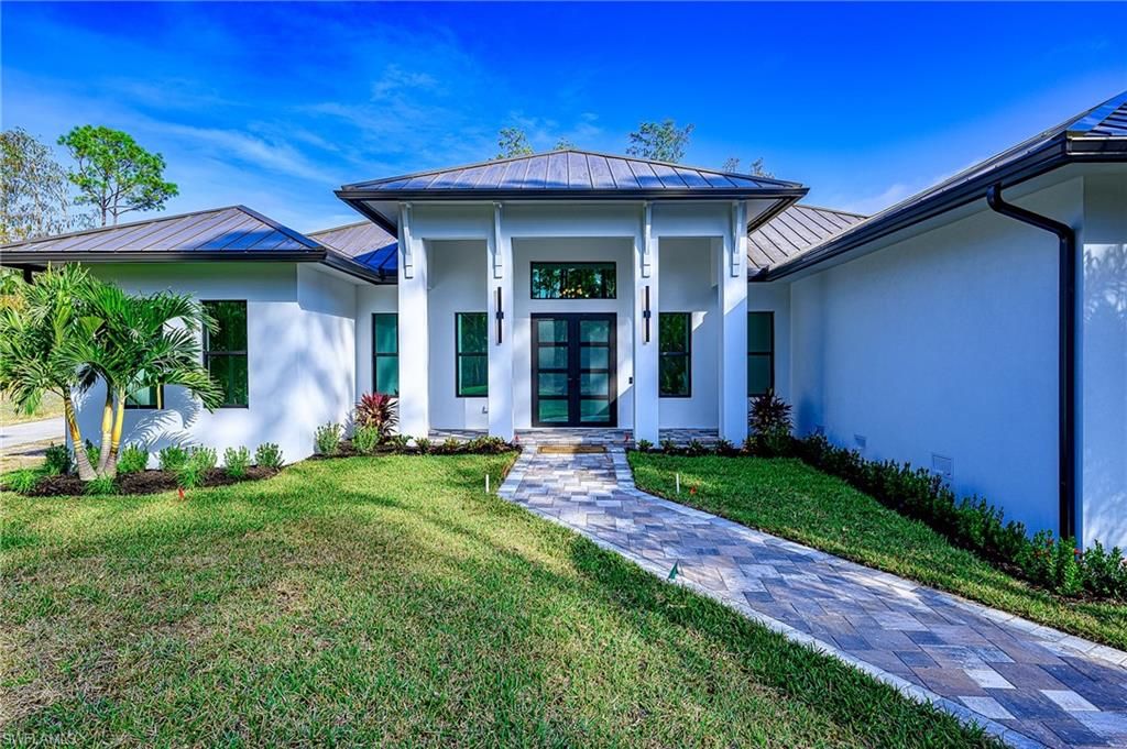 Newly Constructed Custom Home located in highly desired area of Logan Woods with excellent Grade A school district, no HOA fees and acreage. This Custom Home has a well sought out open concept floor plan, featuring a Gourmet oversized kitchen island with dual faucets, JennAir appliances, waterfall quartz tops, butler pantry with additional refrigerator and built-in cabinets and shelves. in addition, 2 electric fireplaces, accent lighting, high end light fixtures, ceiling fans throughout and a metal roof. Feel rest assured with a full house Generac generator, whole house R/O water system and an entry gate. Find your perfect Florida style home for entertaining guests or swimming with family and friends, as you soak in the Florida sunshine in the jacuzzi or oversized gas heated, salt water pool, featuring travertine pavers splashing deck jets within a panoramic screen enclosure. As well, as built in outdoor kitchen, gas grill, electric fireplace and cypress lanai ceiling. Feel confident knowing this custom home has impact resistant windows and doors, quartz countertops, wood planked tile throughout, underground propane tank that services generator, pool heat, grill and tankless water heater. The master bedroom has 2 custom built-in walking closets, soaking tub & multiple shower heads and custom ceilings. Enjoy a romantic evening relaxing on the couch watching your favorite movie or setting your mood and choosing your ambience color setting on the linear electric fireplace surrounded by a built-in custom wood and quartz setting. Conveniently located 5 minutes from I-75, and 5 minutes to Logan Landings, 15 min to Mercato, within 8 to 15 miles from beaches and many shops and restaurants. Agent/Owner
